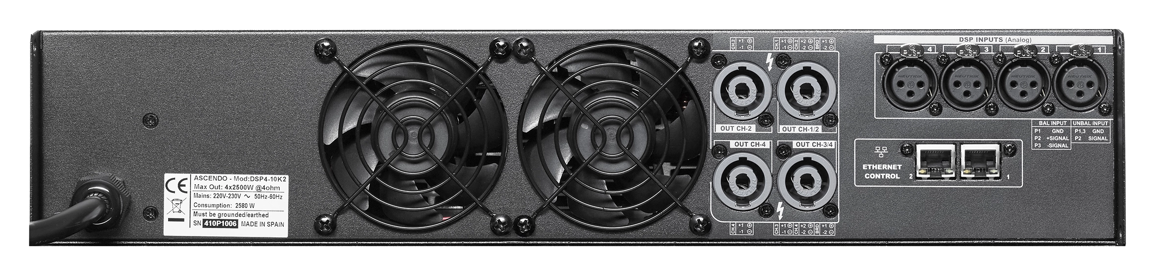 This powerful amplifier range from ASCENDO features state-of-the-art amplification technology, utilizing a very efficient and green design, without diminishing the quality of sound and dynamics that ASCENDO amplifiers are known for. This new generation of power supplies use Power Factor Correction (PFC) to improve efficiency, with the design also featuring high-efficiency audio modules in class D, and a very high capacity for instantaneous power.