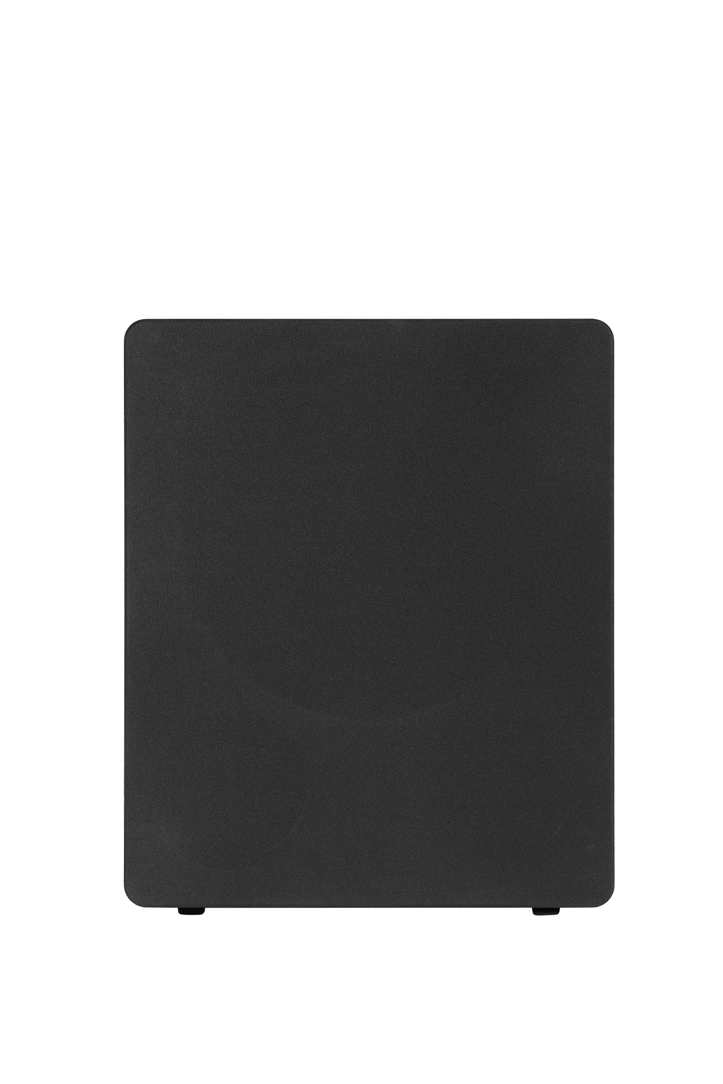 12" Woofer: At the heart of the powered subwoofer is a composite cone driver with a very stiff sandwich cone paired with a large throw rubber surround. The The12 SUB AV driver was developed from the ground up, with a design focus on achieving output, accuracy, dynamics, and linearity, while minimizing distortion. Sophisticated computer modeling and measurement techniques are used extensively in the powered subwoofer design process. The woofer is enclosed in a cabinet made from HDF material outfitted with massive internal bracing and dual ports to minimize port turbulence.