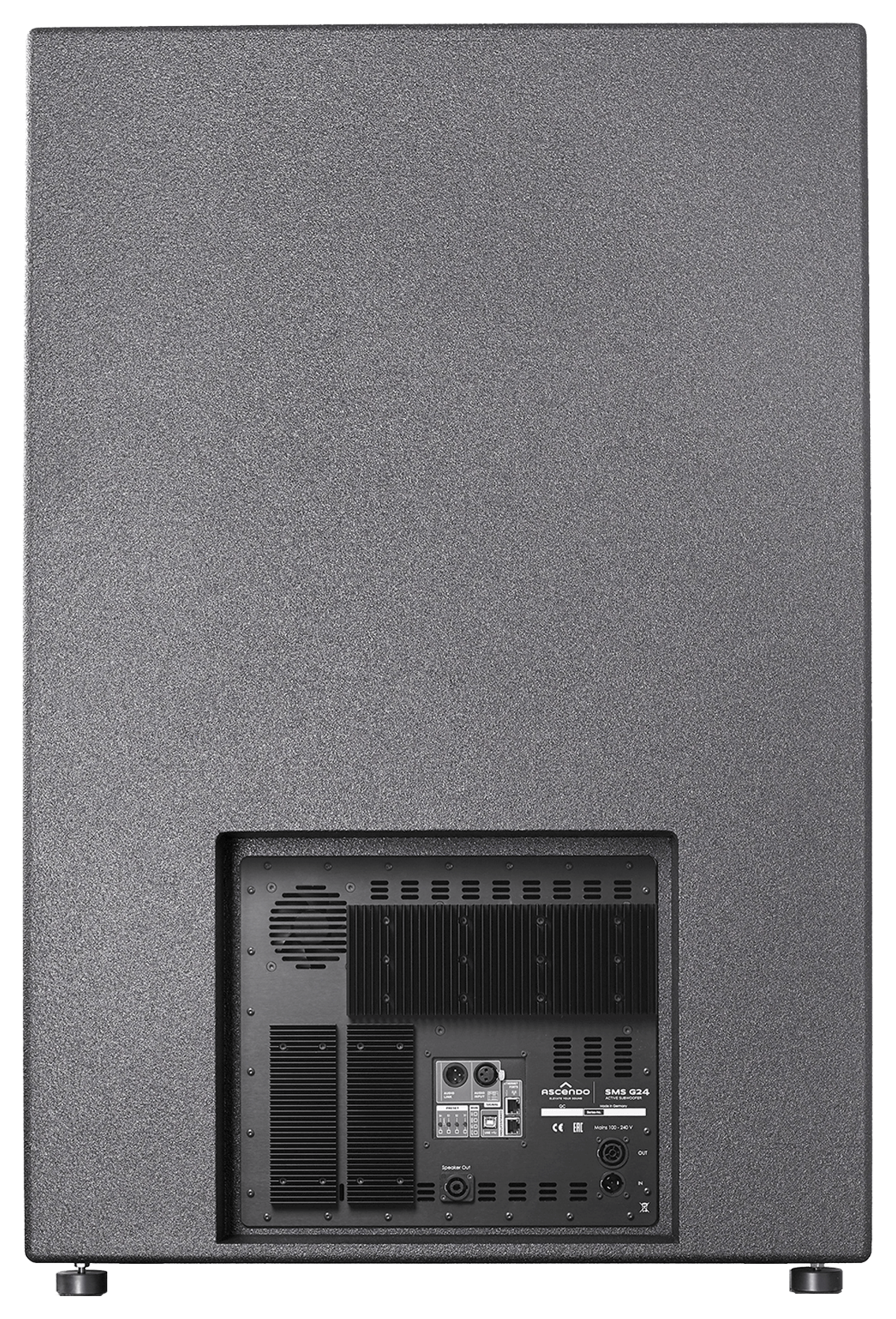 Its ingenious design allows the The24 SUB PRO AS to produce frequencies in the infrasonic frequency range with authority, reaching down lower than subwoofers with a smaller diaphragm surface ever will. At the same time this infrasub renders those notes with much more power, structure and resolution. This ASCENDO-developed 62 cm / 24" super woofer is powered by one of the best high current amplifier designs delivering 6000 watts of power for multiple seconds. Its state-of-the-art DSP control allows to perfectly align the The24 SUB PRO AS to any existing setup by adjusting crossover, phase and ampliture pesponse.
