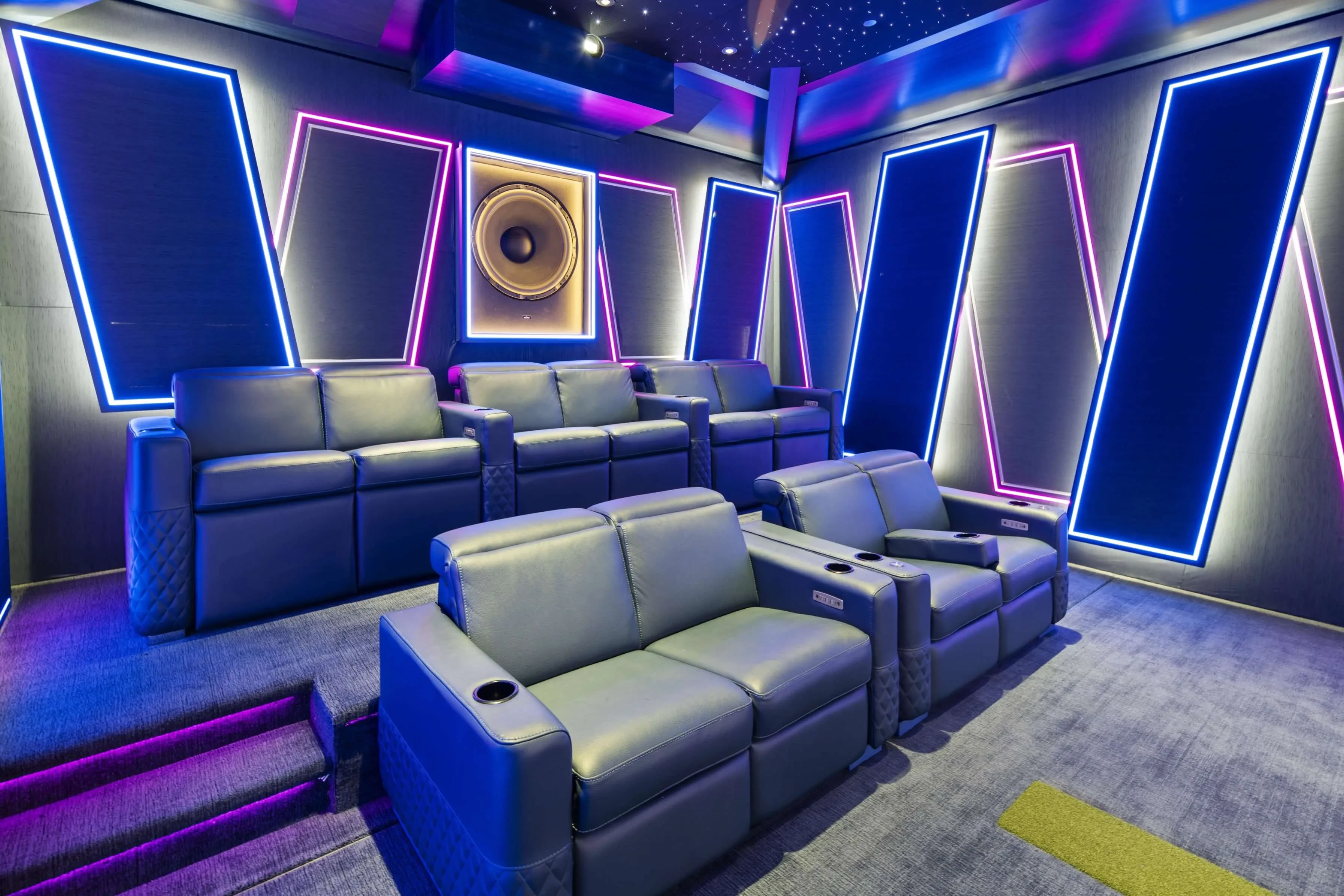 Most residential theaters rely on multiple 12- or 15-inch subwoofers to approximate impact. Large-format drivers like ASCENDO’s 32-inch model move substantially more air per stroke, enabling the room to pressurize evenly at reference level without distortion.